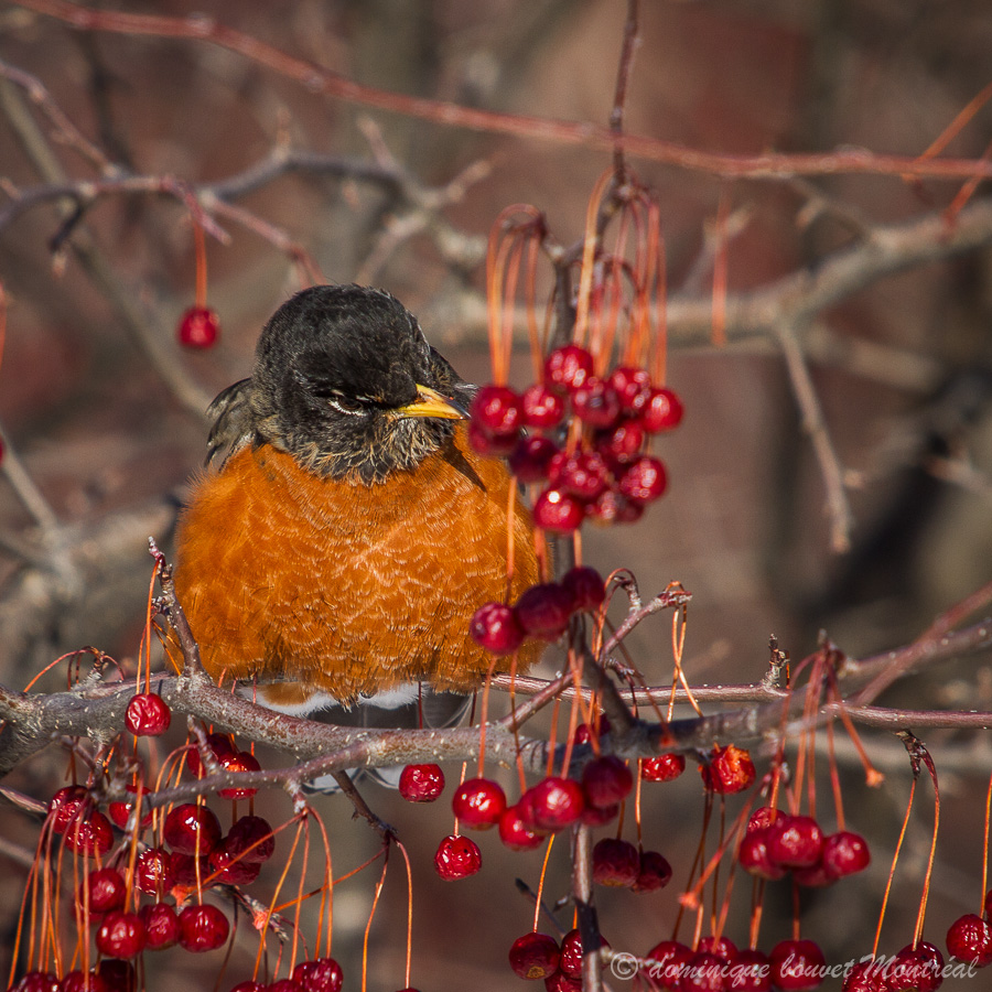 _MG_5106L’autre matin, au boisé Langevin à Boucherville, sur les arbres à petits fruits, il y  avait des merles d’Amérique.  Je les aime bien, eux, mais je les ai tellement photographiés..  Mais ils n’étaient pas seuls..  Gros coup de chance, sur les mêmes buissons, il y avait aussi: