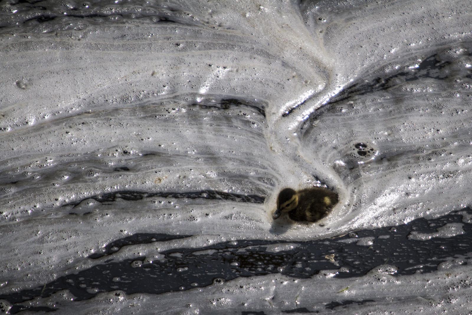 Au bout de l’île de la visitation il y a une retenue d’eau. À une des extrémités, il y a un belvédère. Au pied de ce belvédère, lorsque l’eau est haute, il se forme ce que les savoyards appellent une gouille. Avec le phénomène, déjà décrit icitte, les bulles photographiées de haut forment ces dessins.