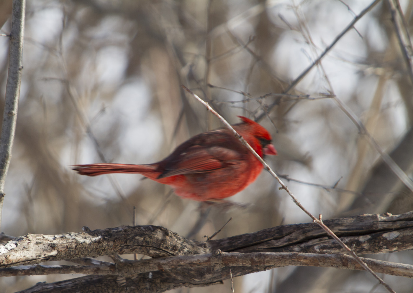 Monsieur et Madame Cardinalis Cardinalis sont vraiment étonnants. Ils ont des couleurs quasi tropicales. Et pourtant, même si on peut le trouver jusqu’au Mexique, il est fréquent au Québec, même en hiver. Cela fait pas mal de fois que j’en photographie, mais jamais encore avec le mâle et la femelle sur la même branche. La maladie de la monoparentalité aurait-elle frappé aussi les oiseaux?