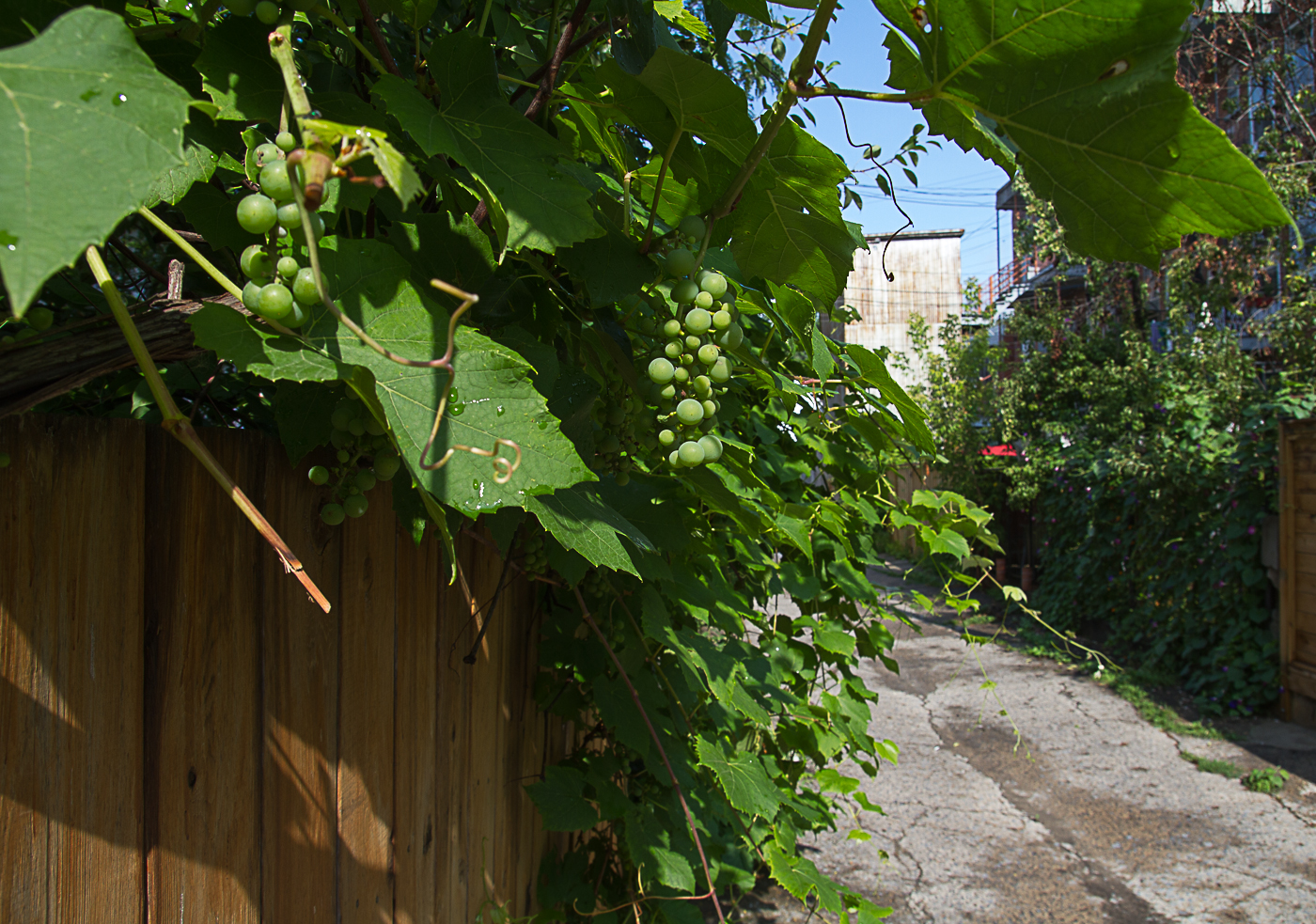 Il y a des fruits dans les ruelles de la petite Italie. Mais le raisin n’est pas encore mur: