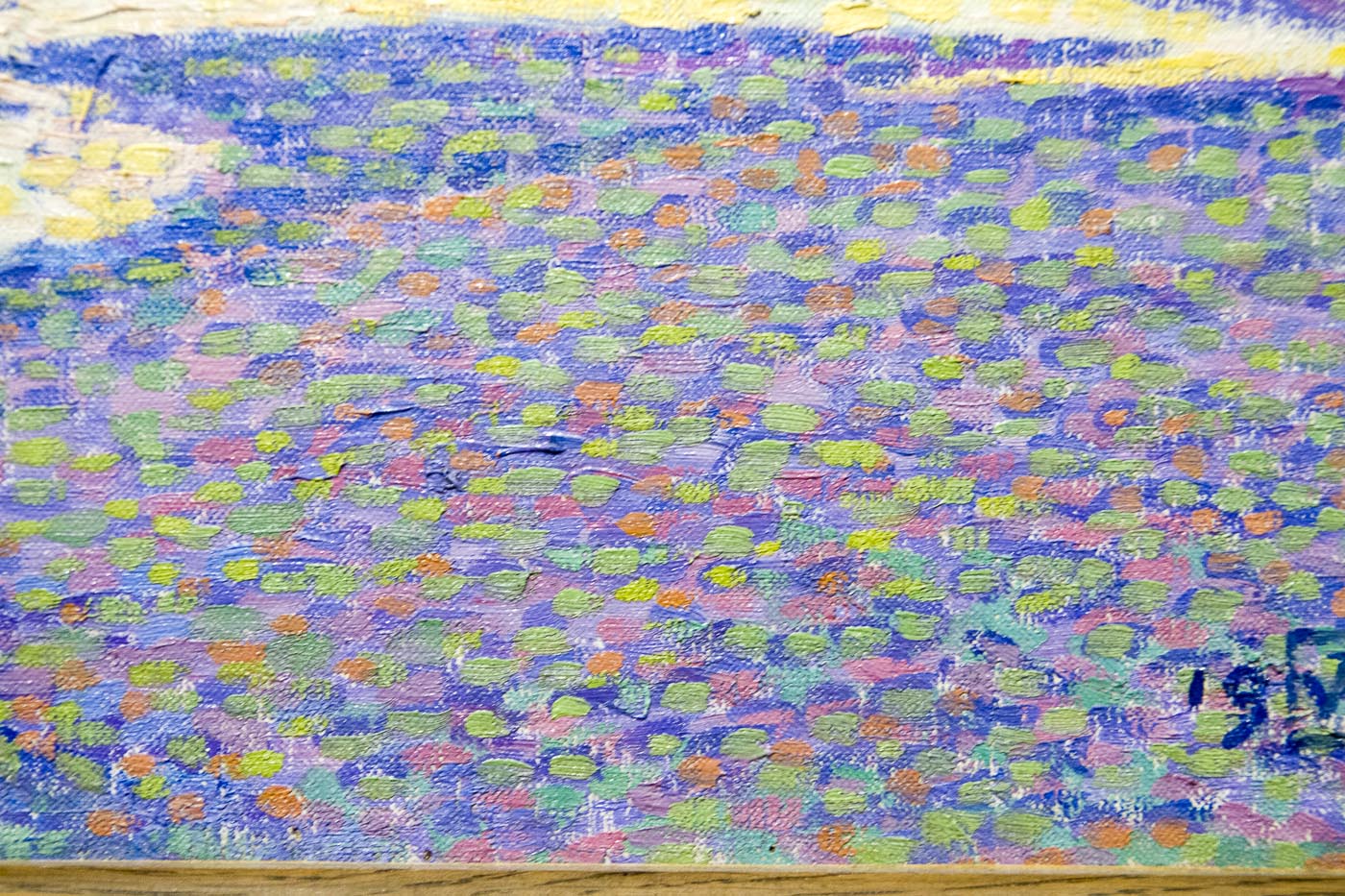 En m’approchant très près, on ne peut qu’être étonné par la technique du peintre. Une multitude de points de couleurs.
